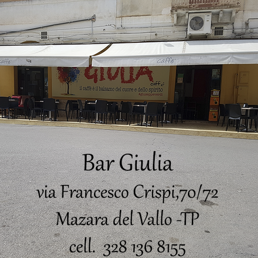 Giulia Caffè di F. BallatorePrenota o visita!| MAZARA DEL VALLO (dist. Km) Giulia Caffè di F. Ballatore Il luogo ideale dove trascorrere in qualsiasi ora del giorno la tua pausa caffè o gustare pietanze prelibatissime. Ottimo locale per trascorrere serate tranquille in compagnia gustando taglieri generosi e gustosi accompagnati da bevande fresche ed artigianali. Contatti